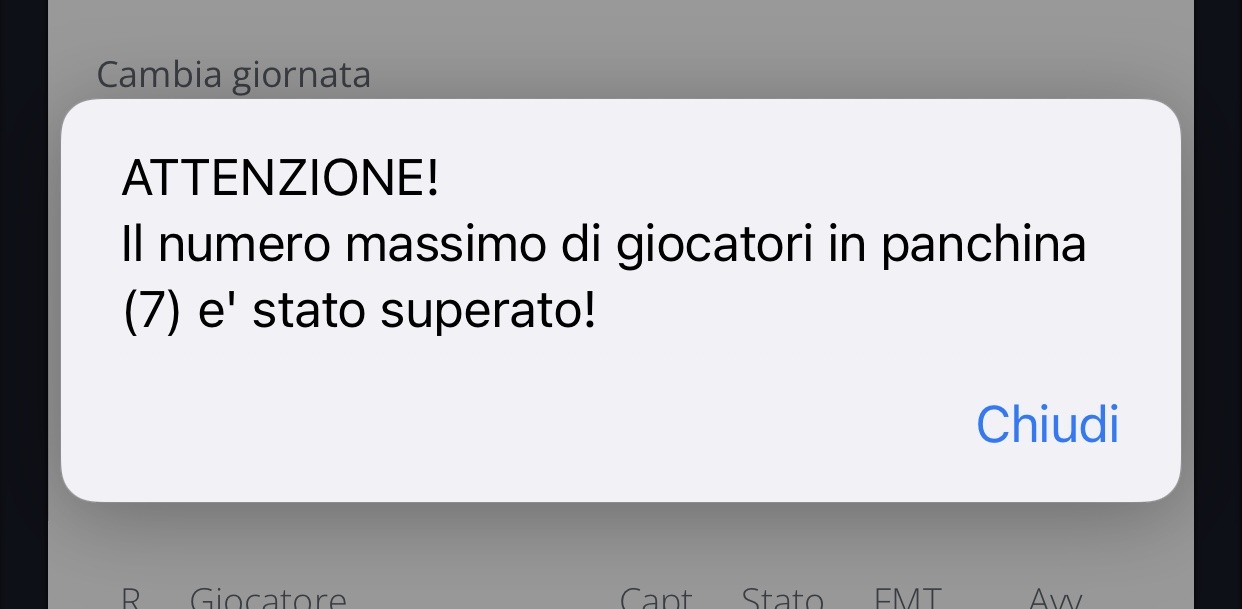 [NO BUG] Impossibile inviare formazioni con più di 7 giocatori in panchina