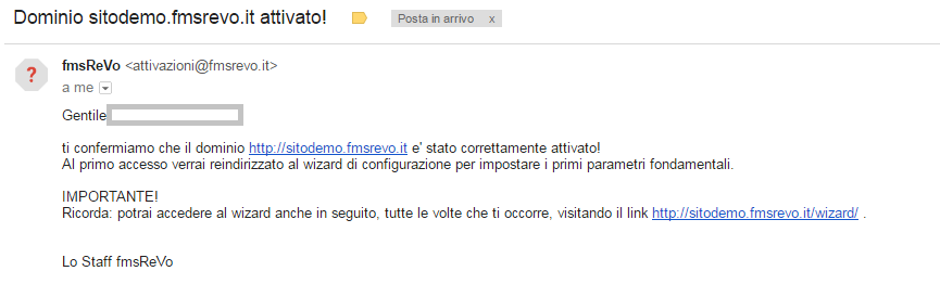 A questo punto potrai accedere al tuo sito http://tuosito.fmsrevo.it/ e procedere con l’inizializzazione.