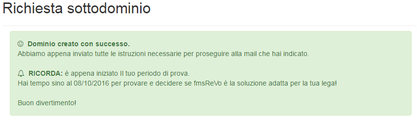 Un popup ti confermerà che la corretta creazione del sottodominio…