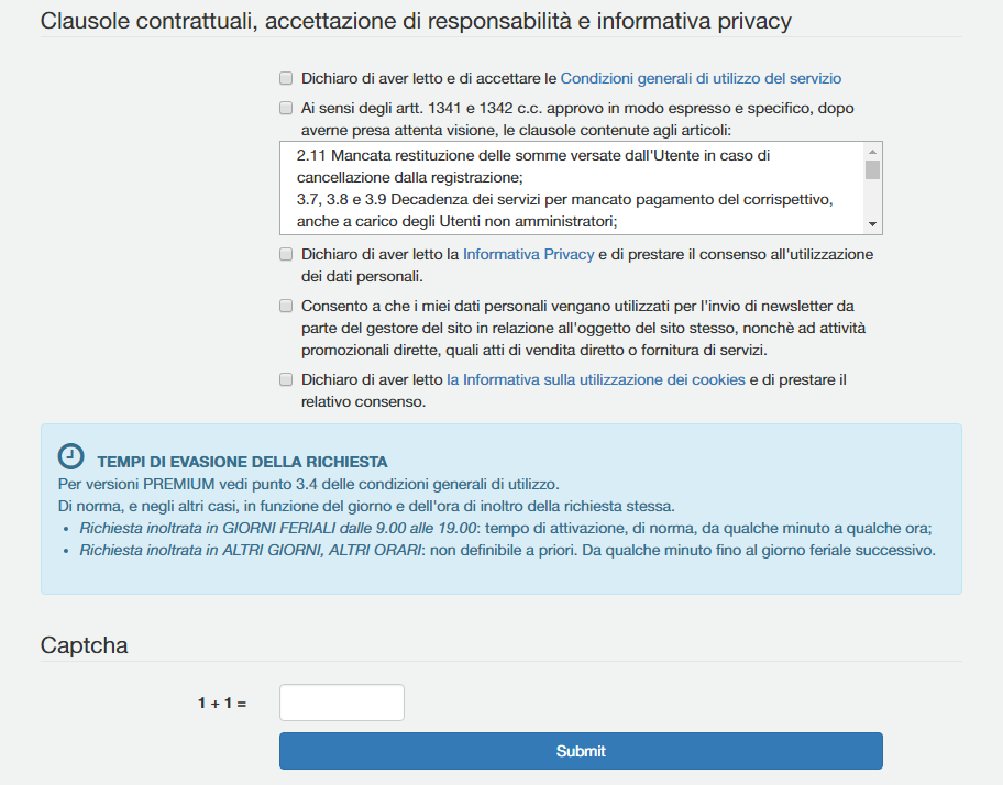 Premendo sul bottone “RICHIEDI” sarai reindirizzato direttamente al form di attivazione, che dovrai compilare in tutte le sue parti…