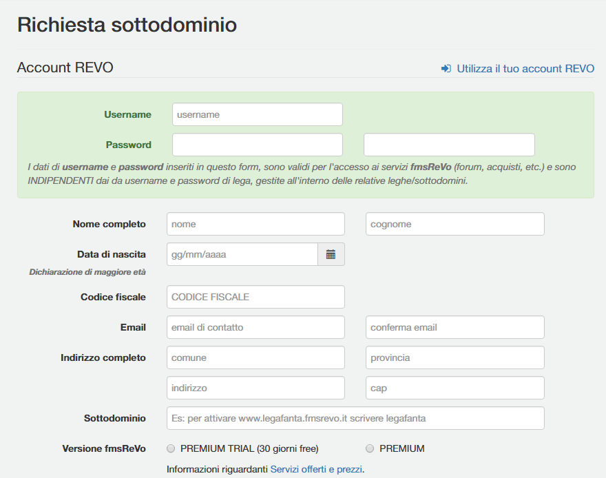 Per il suo funzionamento è necessaria l’attivazione di una lega/sottodominio.