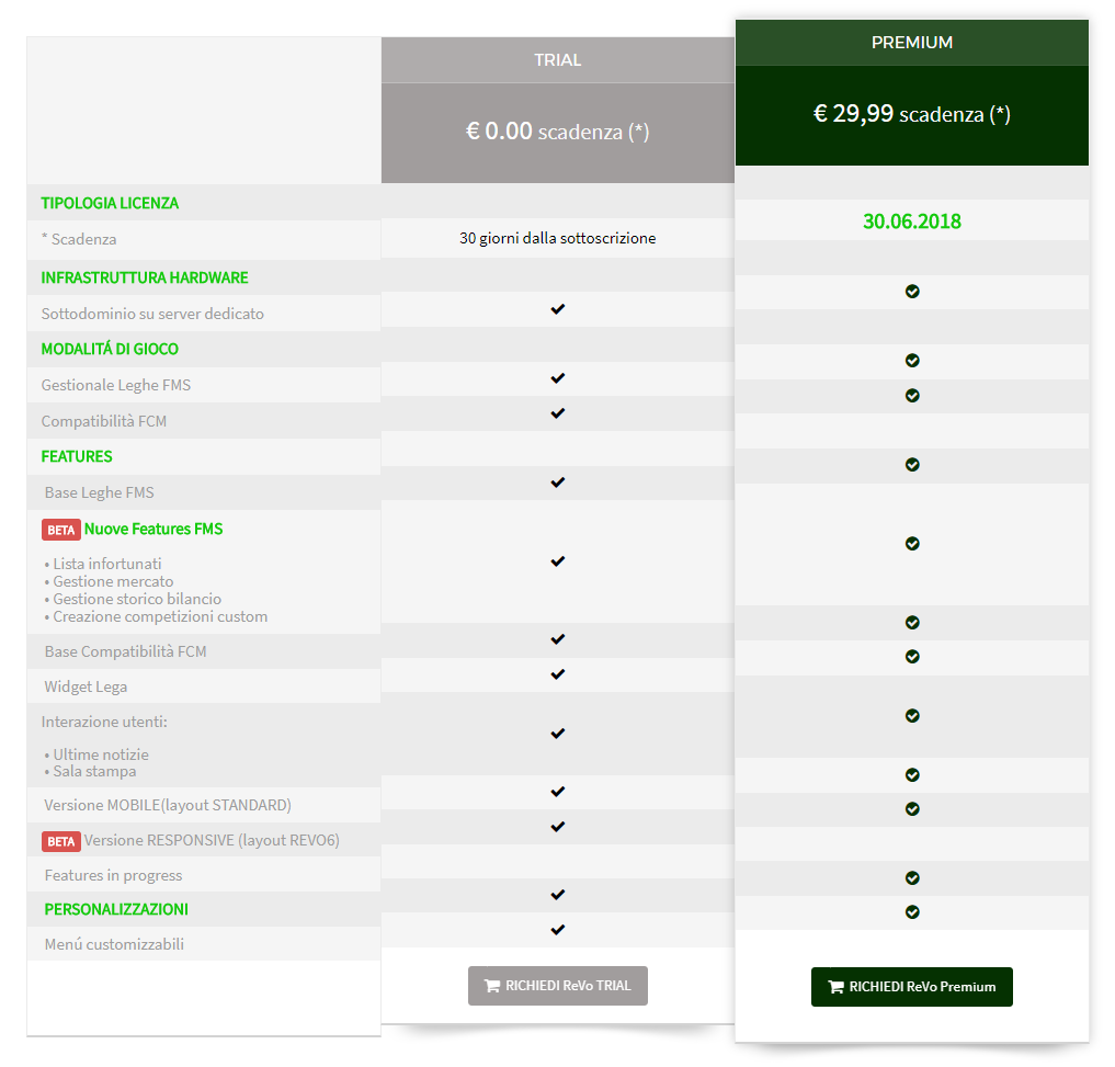 Troverai quindi una pagina di recap con le principali caratteristiche delle versioni disponibili a cui potrai aderire.