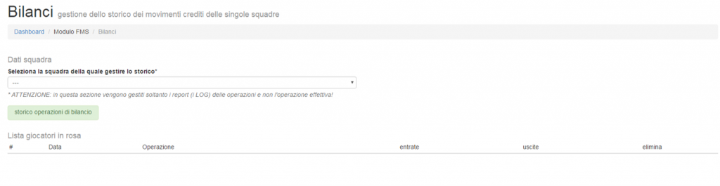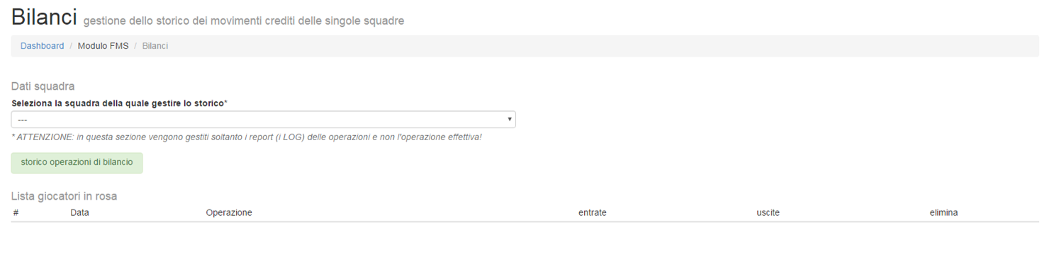 Questa è la pagina che vi permetterà di visualizzare tutte le operazioni iscritte nel bilancio di una società.