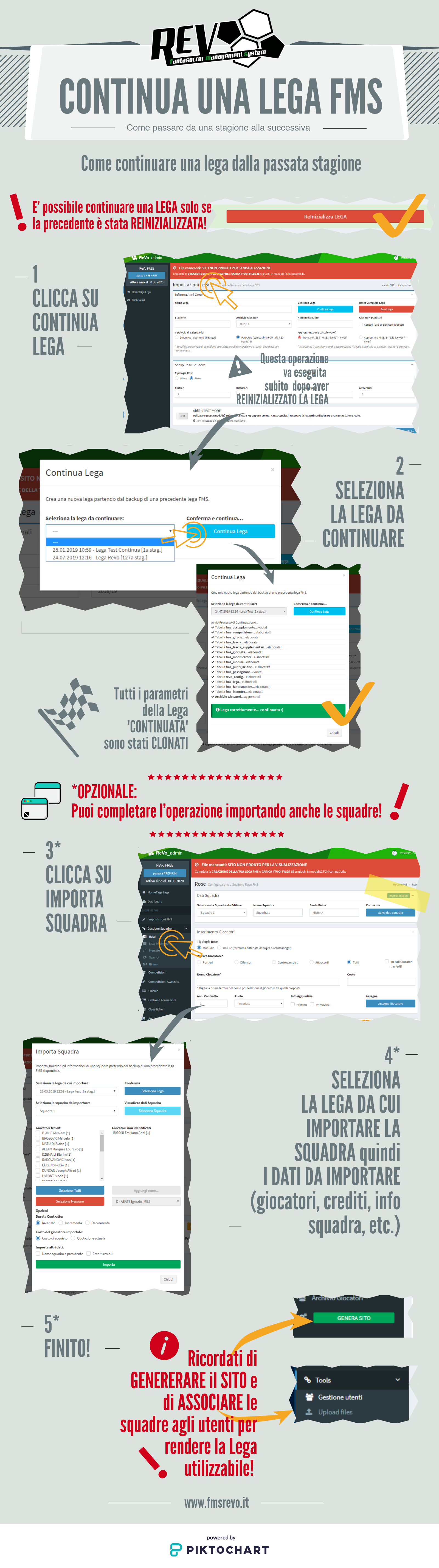 Guida rapida per “continuare” una lega REVO già esistente. Ultimo aggiornamento: 6 anni fa in Guide Rapide 4 0 Articoli correlati Come continuare una lega FMS Come attivare una lega REVO Quick Start FCM – Modalità compatibile Quick Start FMS Come iniziare una nuova stagione FCM – modalità compatibile Come iniziare una nuova stagione FMS