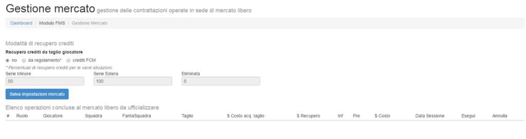 Tutte le operazioni confermate modificheranno in automatico la rosa della squadra e, di conseguenza, i suoi crediti residui.
