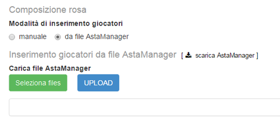 In fase di inserimento da File Astamanager tutto ciò che dovrete fare è selezionare i file prodotti con AM e farne l’UPLOAD. Ultimo aggiornamento: 9 anni fa in Modulo FMS, Rose 0 0 Articoli correlati Gran Premio – punti per posizione Generazione sito Classifiche Calcolo Gestione formazioni Competizione Custom: Parametri Lista Giocatori Inserimento Manuale Rose