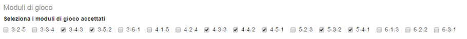 I moduli di gioco utilizzabili dai giocatori vengono definiti in 2 modi.