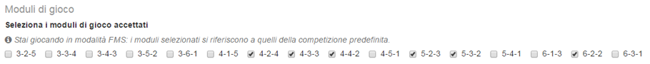 Chi utilizza la modalità di gioco FMS dovrà specificare i moduli nei parametri della competizione predefinita, come indicato qui.