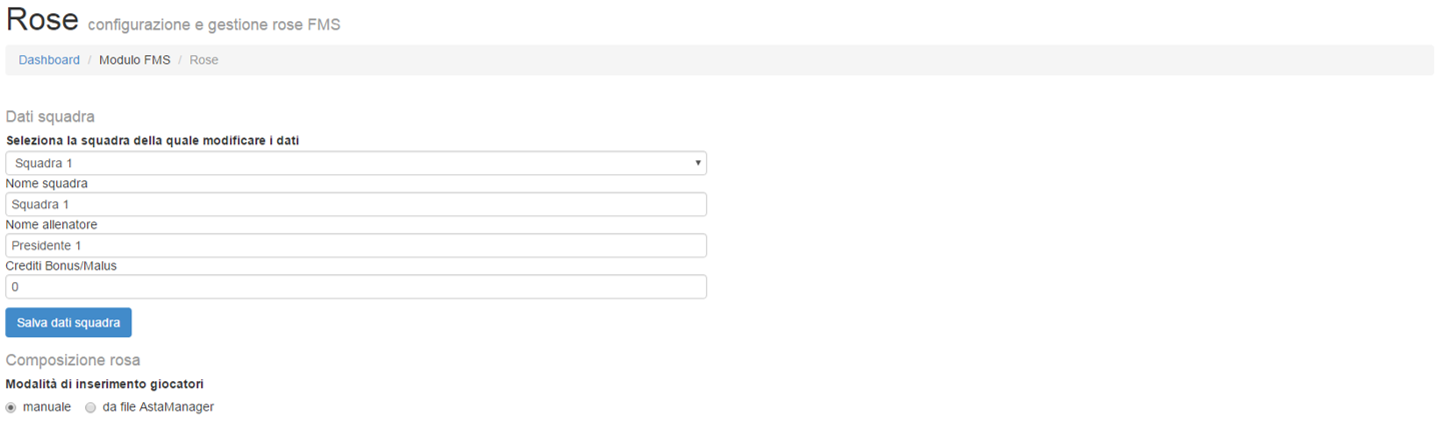 N.B. Dopo ogni modifica ricordarsi sempre di SALVARE i DATI SQUADRA