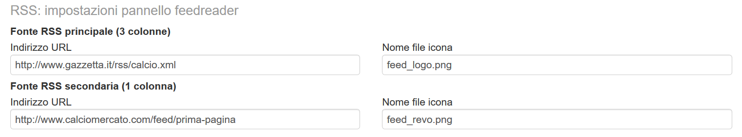 - la URL della Fonte RSS principale (con 3 notizie) e la URL della Fonte RSS secondaria (1 notizia)